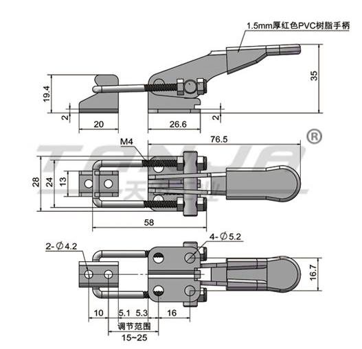 螺桿可調(diào)節(jié)從而改變安裝距和鎖緊力;