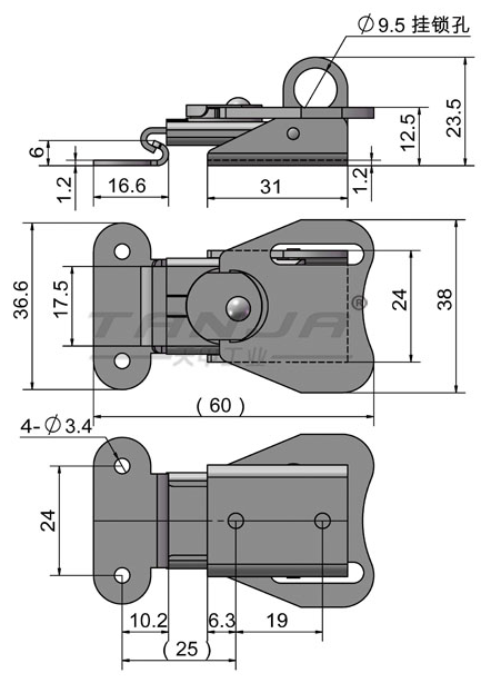 通過偏心結(jié)構(gòu)帶動鎖舌鎖緊,并形成自鎖,防止回彈