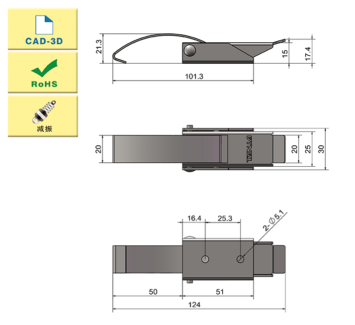 自身的彈性鋼片使搭扣具有預(yù)壓減振功能