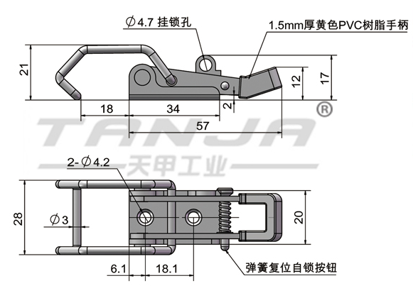 弧形彈簧鋼線使搭扣具有彈性預(yù)壓力,并具有減振功能