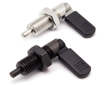 帶定止位的把手式分度銷,適用于要求鎖定銷頭在任何時(shí)候均不得突出的場合。將鎖頭旋轉(zhuǎn)180°,鎖定銷頭自行縮回。槽口提供銷頭定位及防旋轉(zhuǎn)功能。