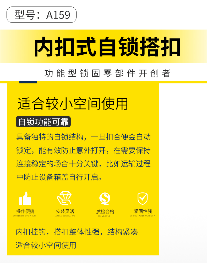 · 操作便捷:開合操作相對簡單,只需簡單的按壓或撥動動作即可完成扣合與解鎖,可提高工作效率,適合頻繁開合的應(yīng)用場景。