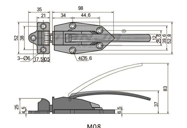鎖舌為滾輪結(jié)構(gòu),單觸操作即可開閉
