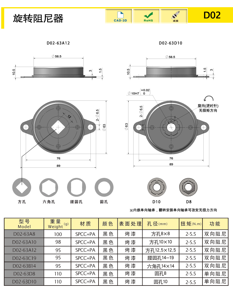 | D02-63D10 | SPCC+PA | 110.01 | 黑色 | 單向阻尼 | 下載 |