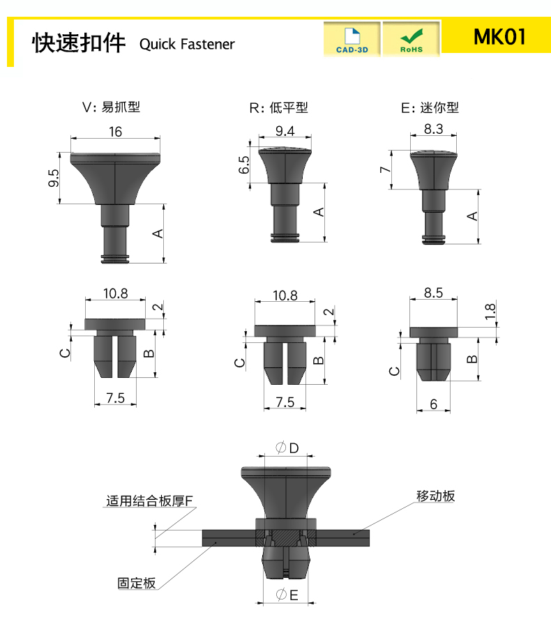 | MK01-V-4BK | NYLON66 | 1 | 黑色 | 14.9 | 12.9 | 5.3 | 7.6 | 8.1 | 5.8~8.1 | 易抓型 | 下載 | ||||