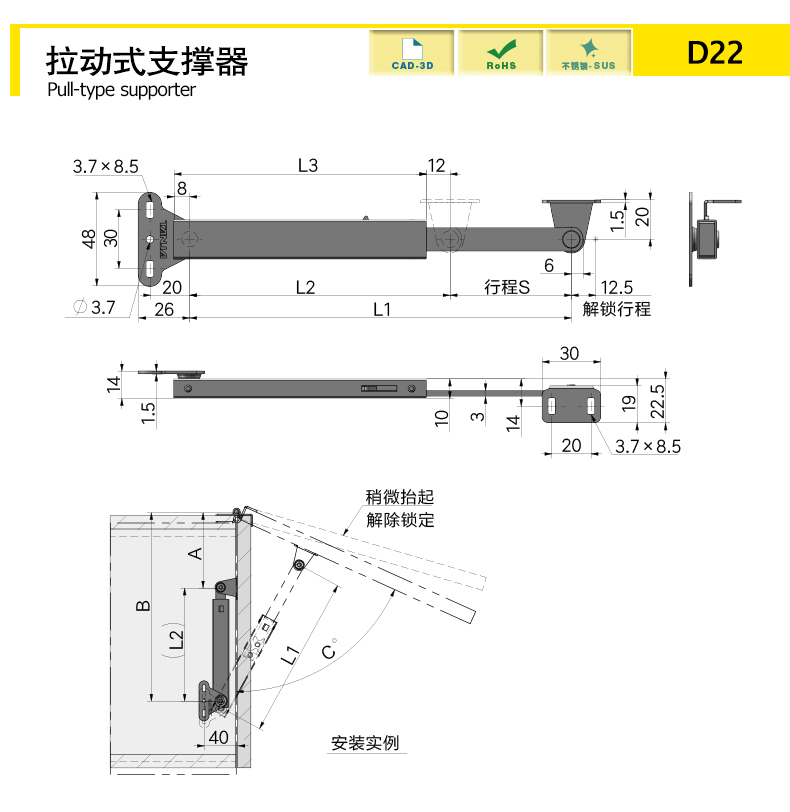 可根據(jù)門高及門開啟角度,決定適當(dāng)?shù)闹ё恢?。此時,應(yīng)確保安裝實(shí)例中的(L2)尺寸大于下圖的L2尺寸