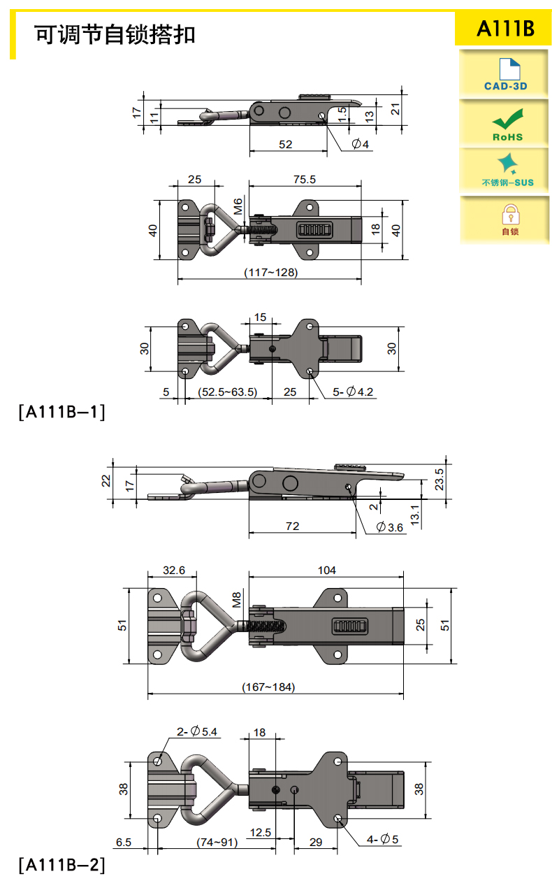 自鎖裝置可實(shí)現(xiàn)自鎖功能,具有可靠的安全性,搭扣不會(huì)因振動(dòng)松脫