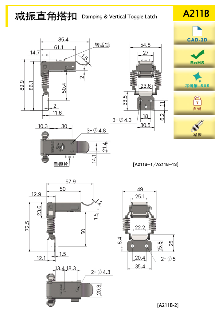 安全鎖裝置可以實現(xiàn)自鎖功能,安全可靠,搭扣不會因震動意外彈開