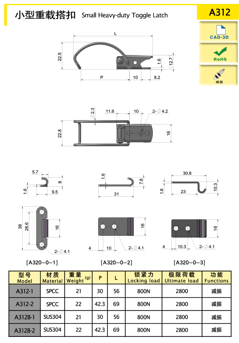 | A312-1 | 56 | SPCC | 21.01 | 800 | 2800 | 減振 | 下載 | ||||