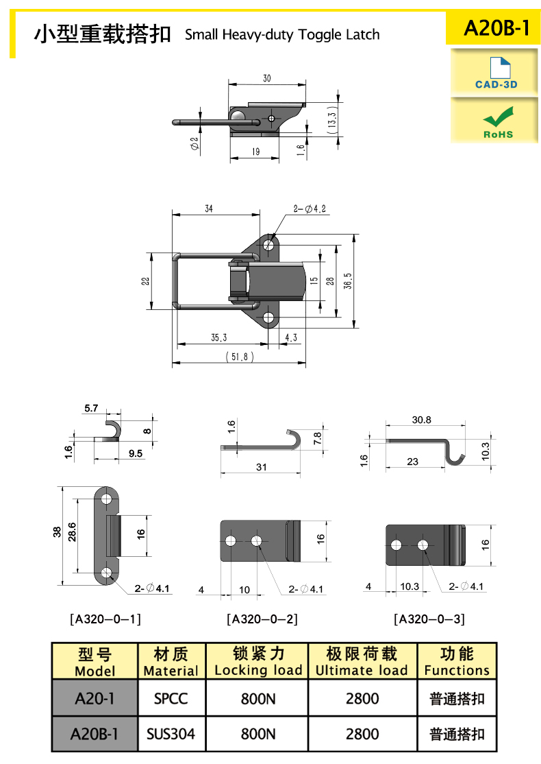 | A20B-1 | SUS304 | 18.71 | 800 | 2800 | 普通搭扣 | 下載 | ||||