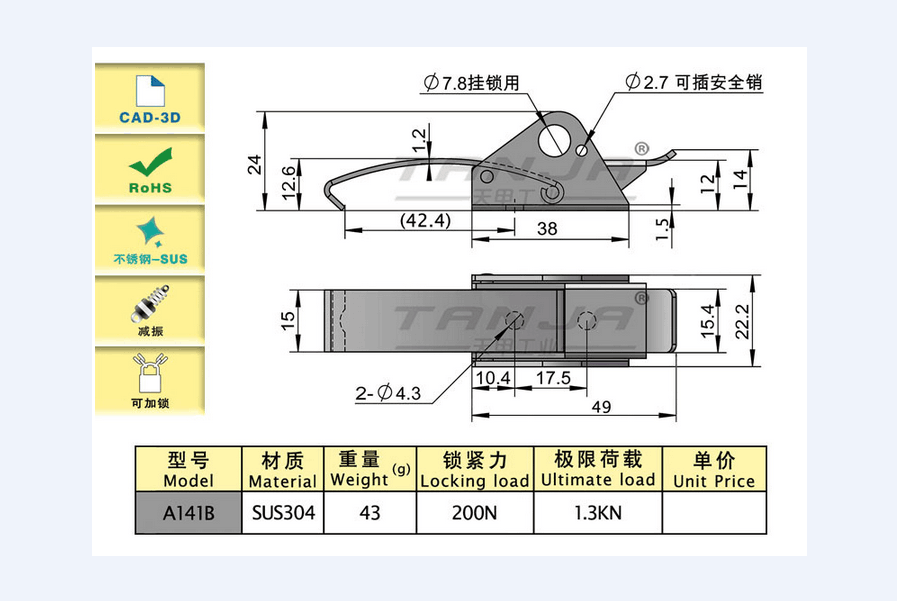 自身的彈性鋼片使搭扣具有預(yù)壓減振功能