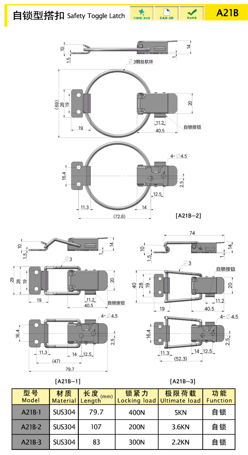 A21B-2更適合于物體的固定,線環(huán)長(zhǎng)度可定制