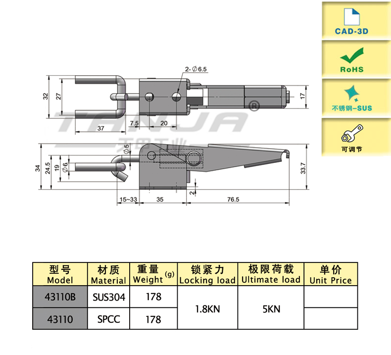 螺桿可調(diào)節(jié)從而改變安裝距和鎖緊力