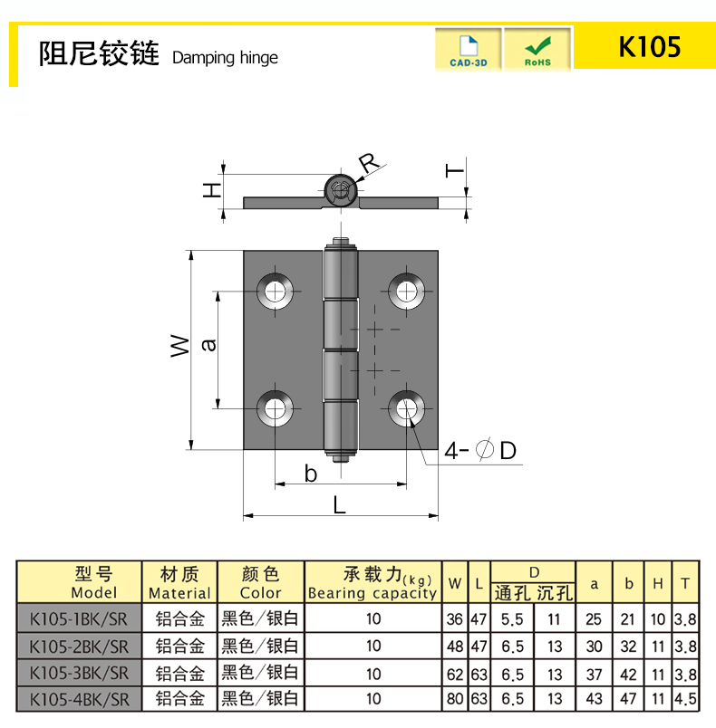 | K105-4SR | 鋁合金 | 80 | 銀白 | 68.01 | 輕阻尼 | 下載 |