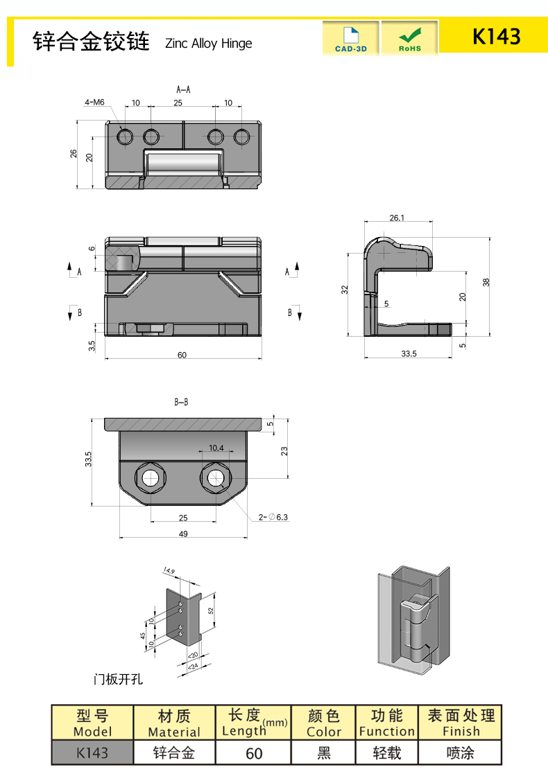 材質(zhì):鋅合金鉸鏈,銅墊片,碳鋼銷軸