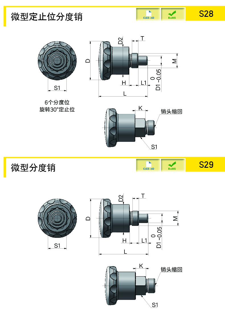BK:把手PA,黑色,亞光飾面;銷頭SUS303帶定止位的分度銷,提起把手旋轉(zhuǎn)30°可定位