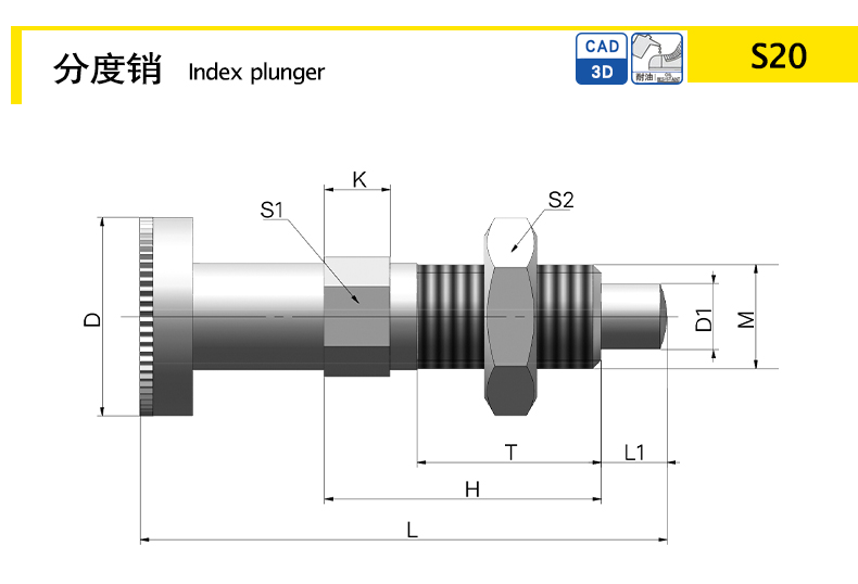 | 型號(hào) | 材質(zhì) ![]() | D1 ![]() | L1 ![]() | M ![]() | T ![]() | D ![]() | 長(zhǎng)度L ![]() | K ![]() | 高度H ![]() | S1 | 最大載荷(N) ![]() | 重量(g) | 3D圖紙 | 選購 | |||