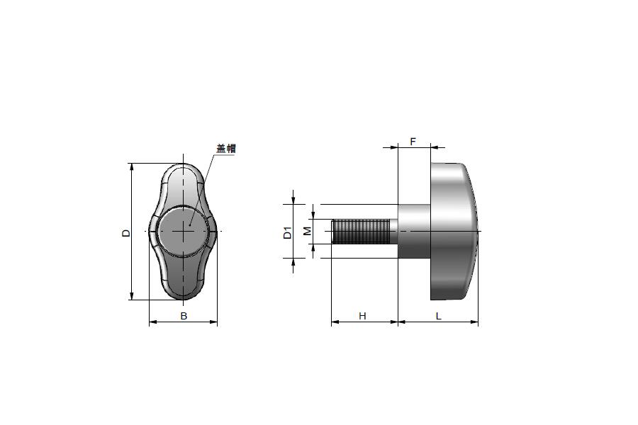 帶蓋帽的旋鈕,可摘掉利用。旋鈕手握部分微凹,可使手獲得優(yōu)佳握緊力,有利于緊固