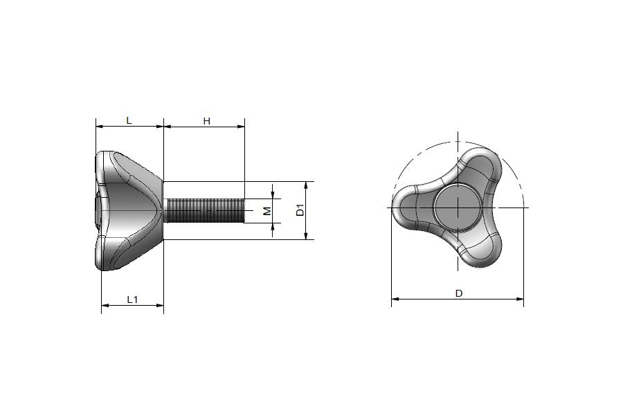 帶弧形三面區(qū)域的旋鈕,外觀漂亮,易于手握緊固。