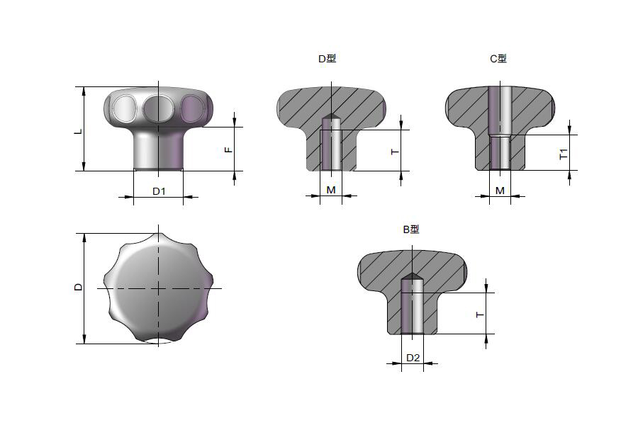 | T50B-D32-M6-D | SUS304 | 32 | 24.4 | 14.4 | M6 | 15 | 12.5 | 螺母 | 1 | 下載 | ||||