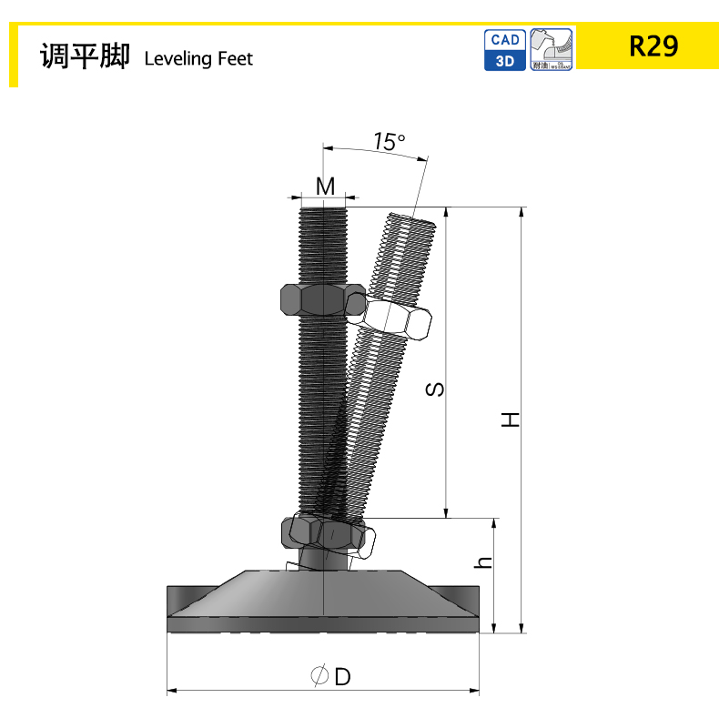 | 型號(hào) | 材質(zhì) | 直徑D | M | S | H | h | 重量(g) | 靜載荷(KN) | 表面處理 | 3D圖紙 | 選購(gòu) | |||