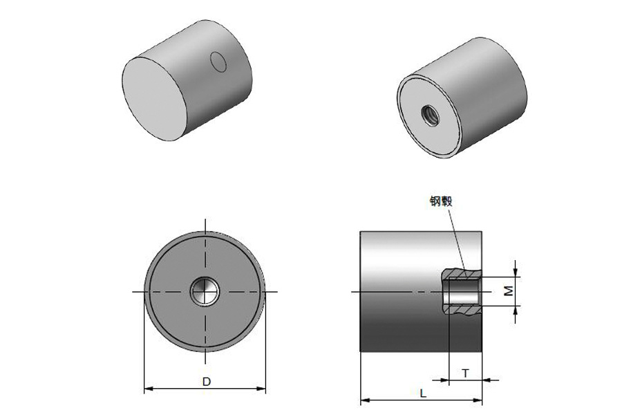 | 型號 | 材質(zhì) ![]() | 重量(g) | 直徑D ![]() | 長度L ![]() | T ![]() | M ![]() | 最佳壓縮量(mm) ![]() |