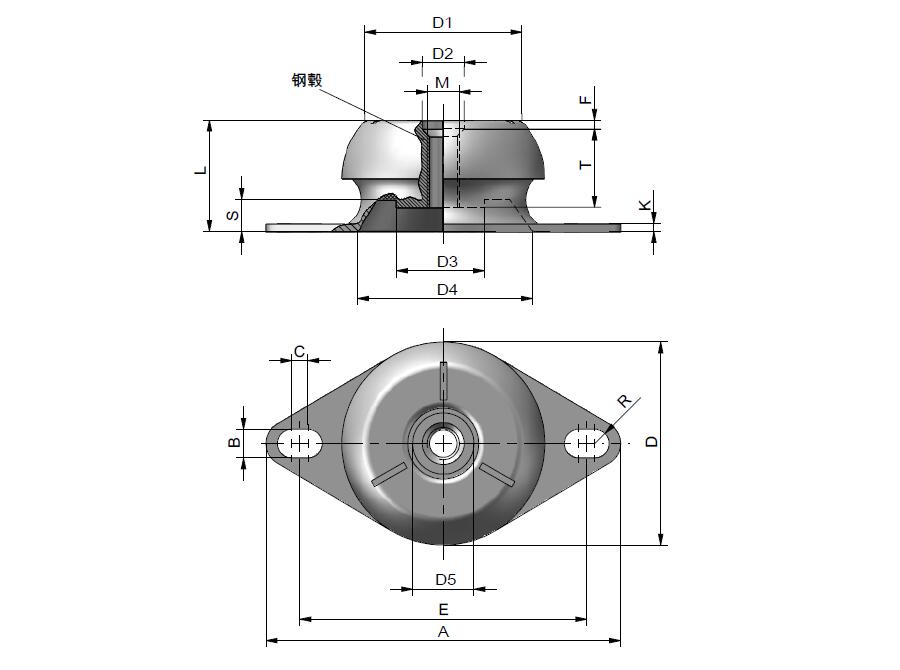 內(nèi)部天然橡膠與金屬件相膠合,減震效果更好。