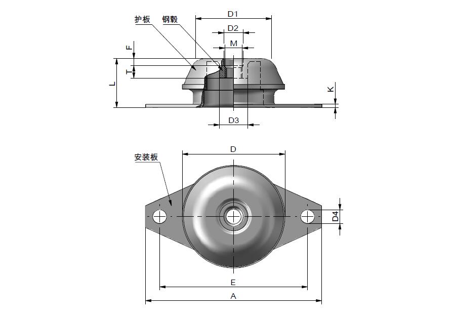 內(nèi)部天然橡膠與金屬件相膠合,減震效果更好。