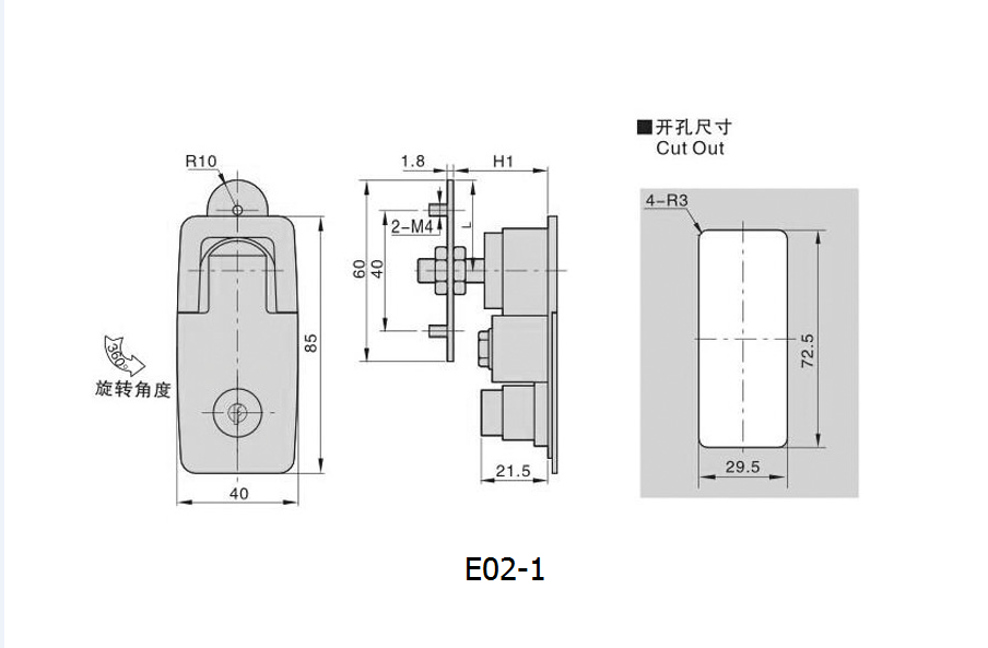 備注:壓縮式門鎖,壓縮量為3mm